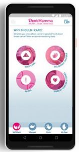 Die App selber ist enorm einfach gehalten und funktioniert auch ohne, dass man lesen kann. Sie kann über Google Play auf jedes Android Phone heruntergeladen werden. Das Tool passt sich der jeweiligen Sprache (Deutsch und andere Sprachen kommen später dazu, genauso wie eine iPhone-Version) des Smartphone Benutzers an und so kann die Frau die entsprechenden Anleitungen immer in ihrer Sprache hören statt lesen. Der Button dazu befindet auf jeder Seite am gleichen Ort. Die App zeigt auf der Willkommen-Seite 4 Knöpfe mit den Titeln: Why Care, Self Check, Changes und I care. Hinter diesen Buttons verstecken sich weitere Knöpfe und viele Informationen, immer darauf bedacht die Würde der Frau zu wahren. Auf der Website https://dearmamma.org/ ist auch ein 30-minütiger Film zur Brustkrebskampagne von Dear-Mamma zu sehen. Der Film zeigt wie alles begann und lässt viele Betroffene Frauen und Angehörige zur Sprache kommen.