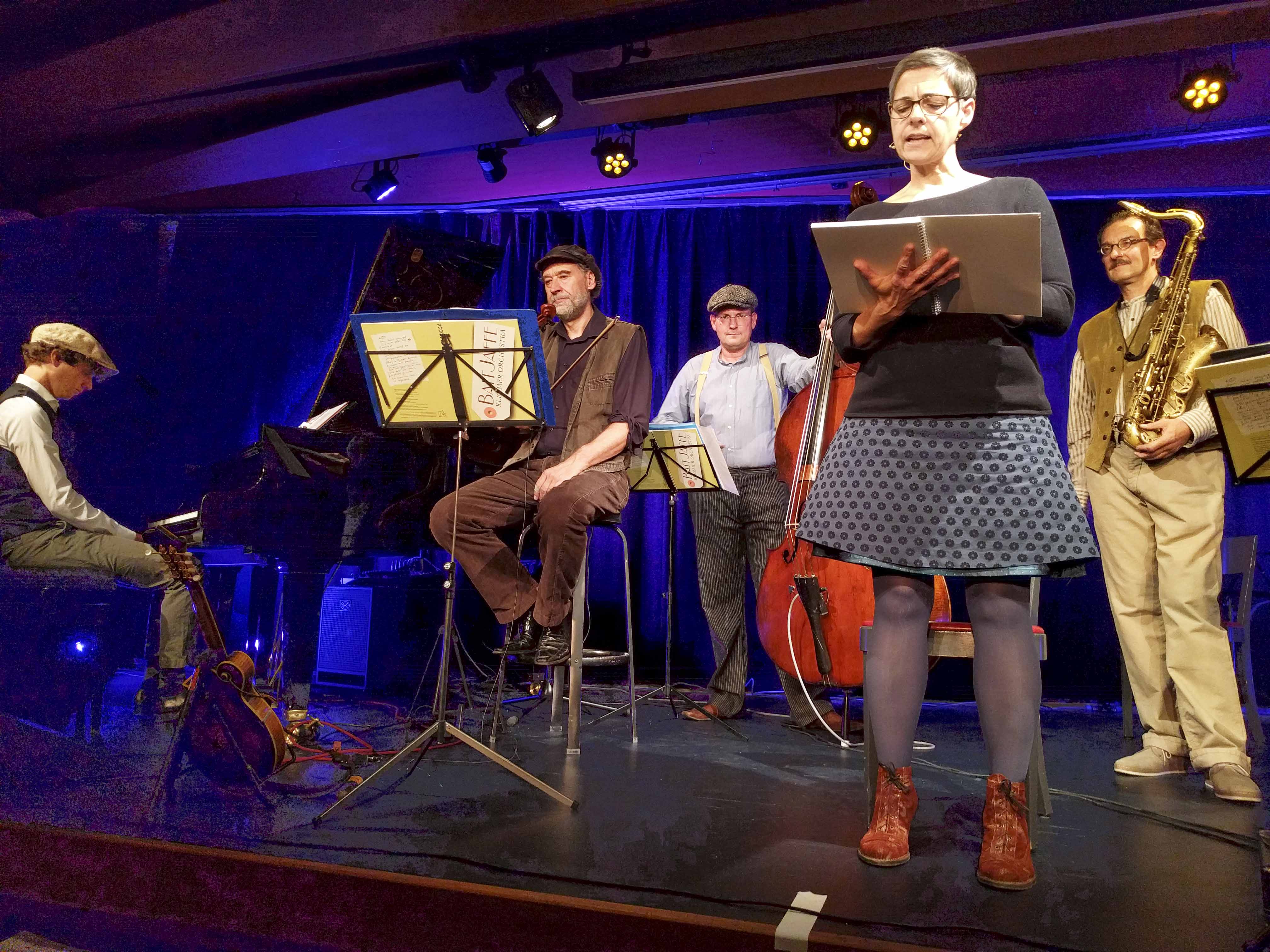 Das Buch wurde von Domo Löw gestaltet. Er hat neben den vielen Texten und Noten auch die Fotografien so passend angeordnet, dass ein wirklich gelungenes Gesamtwerk entstanden ist. Franziska Maria von Arb hat, gekonnt und gut ausgewählt, aus den Texten gelesen immer wieder unterbrochen oder untermalt, von den Klängen des Bait Jaffe Klezmer Orchestra. Wie zu Beginn von Sascha Schönhaus angekündet wurden alle Stücke nur angespielt und jedesmal, wenn die Musik aufhörte, schrie das Herz ‚Neiiin, nicht aufhören‘. Zum Glück spielen Bait Jaffee – ganze Stücke – vom 24. bis 28. Oktober jeden Abend im Theater Tabourettli und zum Glück hat es, wenn auch wenige, noch Tickets für jeden Abend.