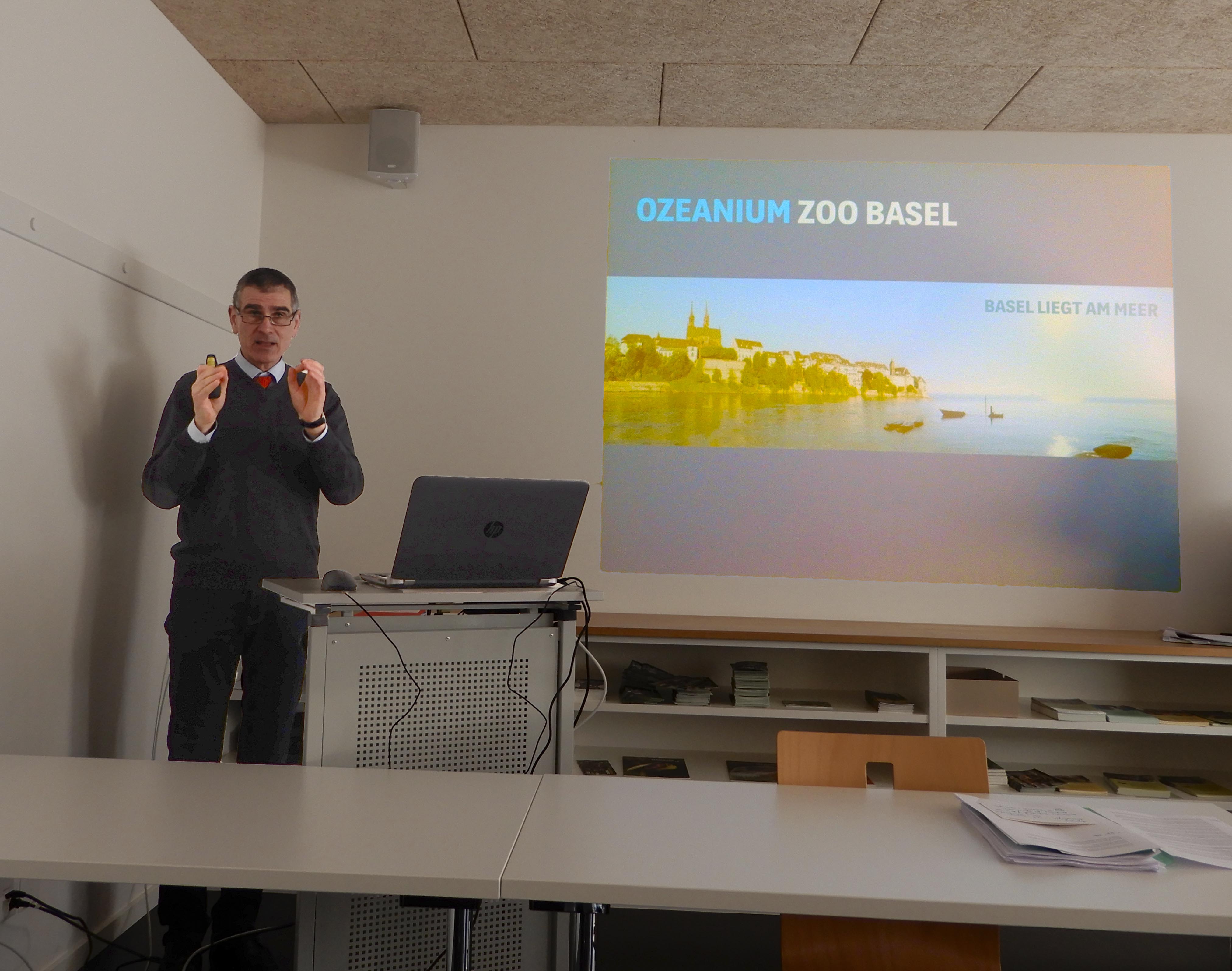 Das Ozeanium ist nicht nur für den Zolli ein wichtiges Thema, es geht uns alle etwas an! Wie wichtig das Thema dem Zolli ist zeigte sich am Presseapéro vom 26.2.2019. Der Direktor Olivier Pagan wurde vom Verwaltungsratspräsident Martin Lenz, dem Leiter der Fachgruppe Finanzen und Fundraising Jean-Nicolas Fahrenberg und dem Leiter der Fachgruppe Bau und Gestaltung Lukas Stutz unterstützt. In den Vorträgen der jeweiligen Redner war zu spüren wie wichtig jedem einzelnen dieses für Basel so wertvollen Projekts ist. So sind die Redner fundiert auf viele Details eingegangen und haben sehr überzeugend dargelegt, wie wichtig ein Ozeanium für den Zolli und Basel ist und wie sehr ihnen dieses am Herzen liegt. Mit seinem Anfangsbild „Basel liegt am Meer „hat der Direktor gezeigt und was es beim Ozeanium geht. Basel ist durch den Rhein direkt mit dem Meer verbunden und auch wenn wir in einem Binnenland leben hat unsere Lebensweise einen grossen Einfluss auf das Meer. Nur wer die Meerestiere „erlebt“ kann diese auch verstehen und schützen. Genau dieses Erleben wird im Ozeanium möglich. Wie im Zoologischen Garten selber sollen die Besucher auch im Ozeanium für Tiere und Pflanzen begeistert werden. Für eine Sensibilisierung der bedrohten Lebensräume also der Meere ist das Ozeanium wie geschaffen. Mit den grossen nicht überfüllten Aquarien können viele – auch vom Aussterben bedrohte Tier-und Pflanzenarten – so gehalten werden, dass sie ihr natürliches Verhaltensrepertoire zeigen können. Dies hilft dem Verständnis für die Lebensräume in den Weltmeeren und dienst auch der Forschung. Natürlich, so Olivier Pagan, ist das näher bringen der Meerestiere und Pflanzen nicht so einfach, wie bei den Säugetieren. So ist die seltene Geburt des Okapis oder noch viel mehr, Junge bei Elefanten oder Menschenaffen den Menschen immer ein Extrabesuch unseres Zollis Wert. Junge bei Katzenhaien (durchsichtige Eier mit den erkennbaren Embryonen sind immer wieder in der Ausstellung des Vivarium zu sehen) ziehen vermutlich nicht so viele Extrabesucher an. Im grossen Kontext eines gut geplanten und didaktisch aufgebauten Ozeaniums werden aber durchaus die Eigenheiten und Schönheiten solcher Jungtiere zu sehen sein und hoffentlich die Besucher so begeistern, dass sie eben auch Rücksicht auf die Meere nehmen.